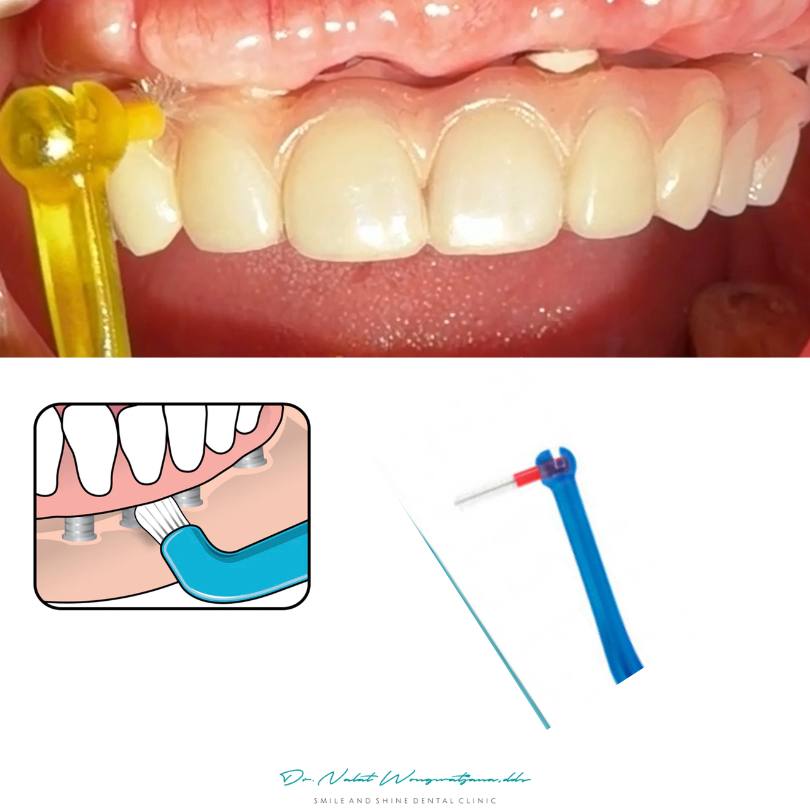 ฐานฟันถูกทำ “ช่องเปิดด้านใต้” เพื่อให้สามารถใช้แปรงซอกเล็กหรืออุปกรณ์ช่วยทำความสะอาดได้ง่าย